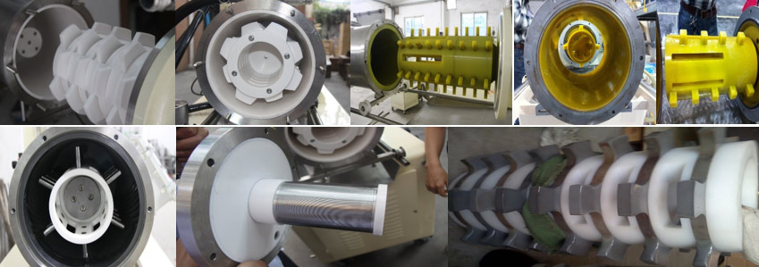 出料面積大,是盤式和渦輪式機(jī)器的2-4倍,物料通過性好,不易堵塞機(jī)器,在生產(chǎn)有膨脹性物料時優(yōu)點(diǎn)突出。冷卻換熱效果好。桶體,轉(zhuǎn)子,出料器三位冷卻,冷卻面積是盤式及渦輪式設(shè)備的1.3-1.5倍,有效控制物料的升溫問題。