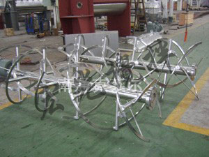 GLD攪拌器應用于高粘度(超過100,000cp)的流體攪拌中,有好的傳熱和表面效果。其結構形式有單螺帶和雙螺帶二種。不同數量的翼片,不同螺距以及不同形式的螺帶可以根據不同的攪拌要求而特殊制作。