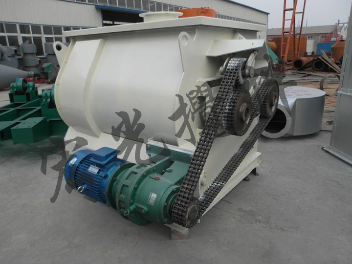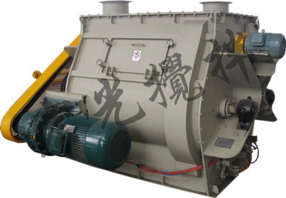 本系列混合機以強烈、混合為特點、臥式筒體內兩根攪拌等速反向旋轉,上特殊布置的槳葉確保物料徑向、環向、軸向三向運動,形成復合循環,在短時間內達到均勻混合。